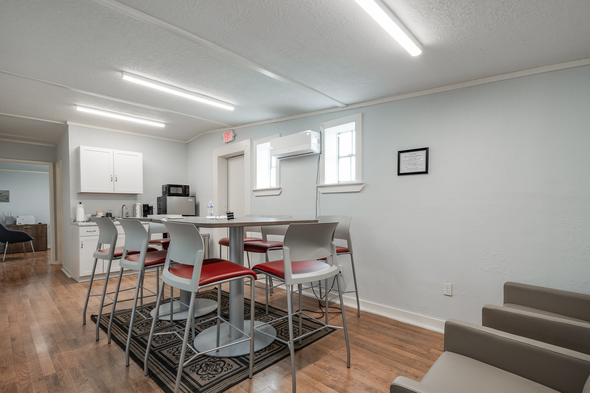 - Warehouse Features: 2 16ft OH Doors, Reception Area, Full Bath, Office, Storage, Breakroom