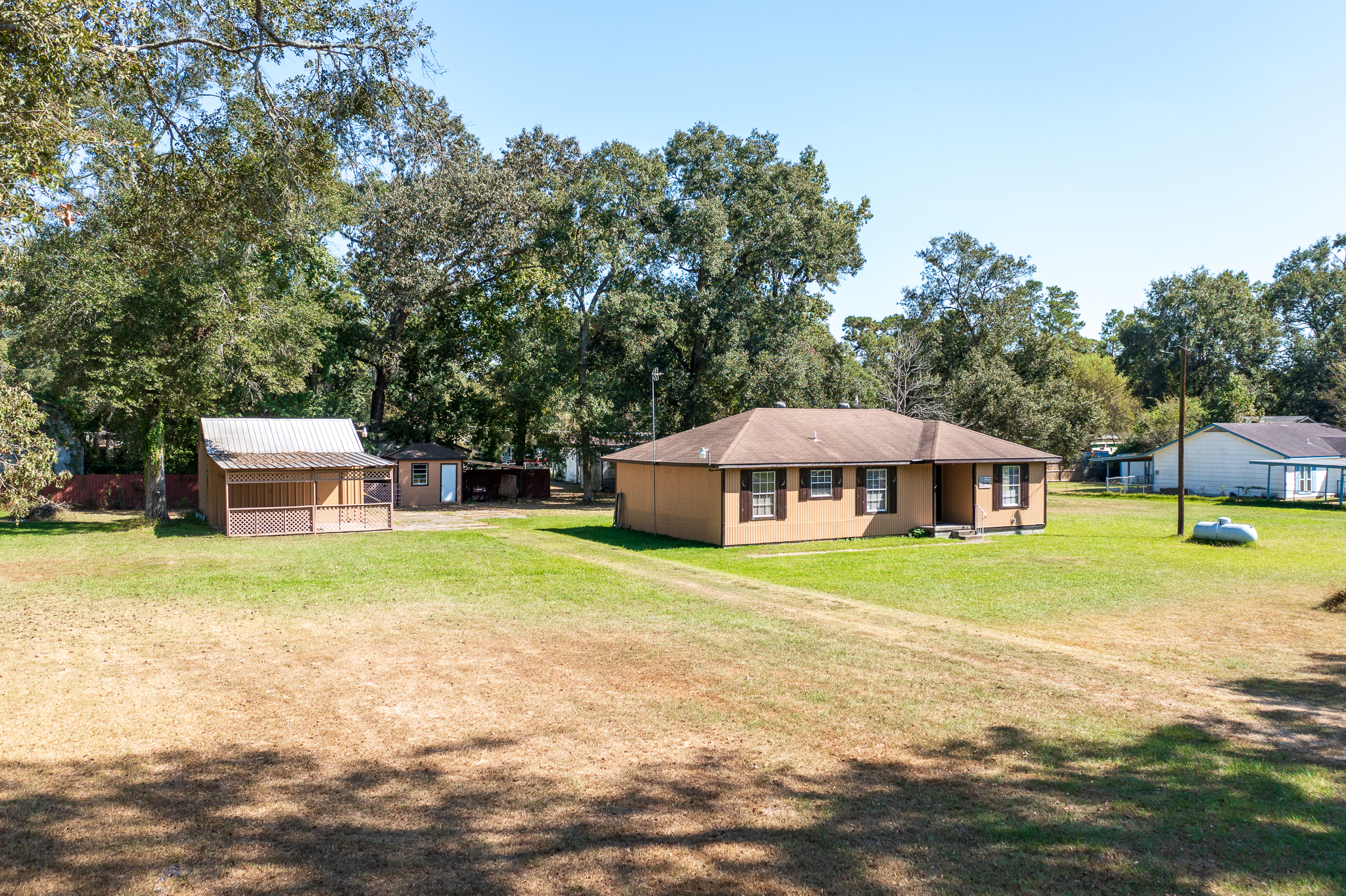 Charming and well-maintained 3-bedroom, 1.5-bath home situated on a spacious 1.02-acre lot in the heart of New Caney. This 1,310 SF residence offers a comfortable layout with practical features, including a utility room, detached shop/garage, and additional storage shed. The property is fully fenced with a gated driveway, providing privacy and security, and includes a whole-home generator for peace of mind.