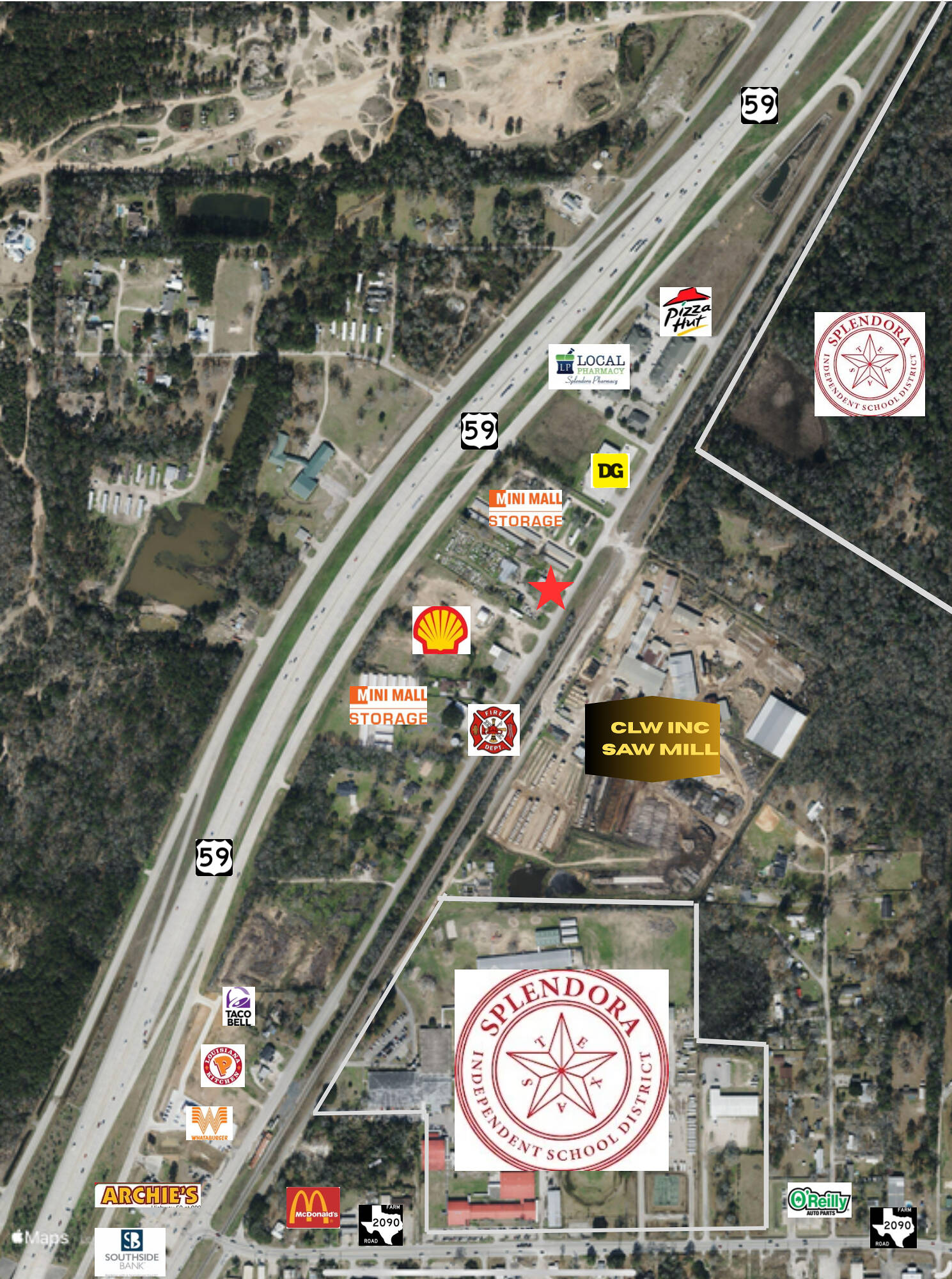 Single-Tenant Building on Multi-Tenant Property, Ready for occupancy with new paint, flooring and lighting. Former Medical Clinic Ideal for retail or office space with ample parking. City Water/Sewer (Natural Gas available) Located within East Montgomery County Improvement District & City Limits of Splendora, high growth area with increasing traffic, Old Hwy 59 frontage, Adjacent to "coming soon" development, Easy access to I-69 (Hwy 59), FM 2090m and FM 242.