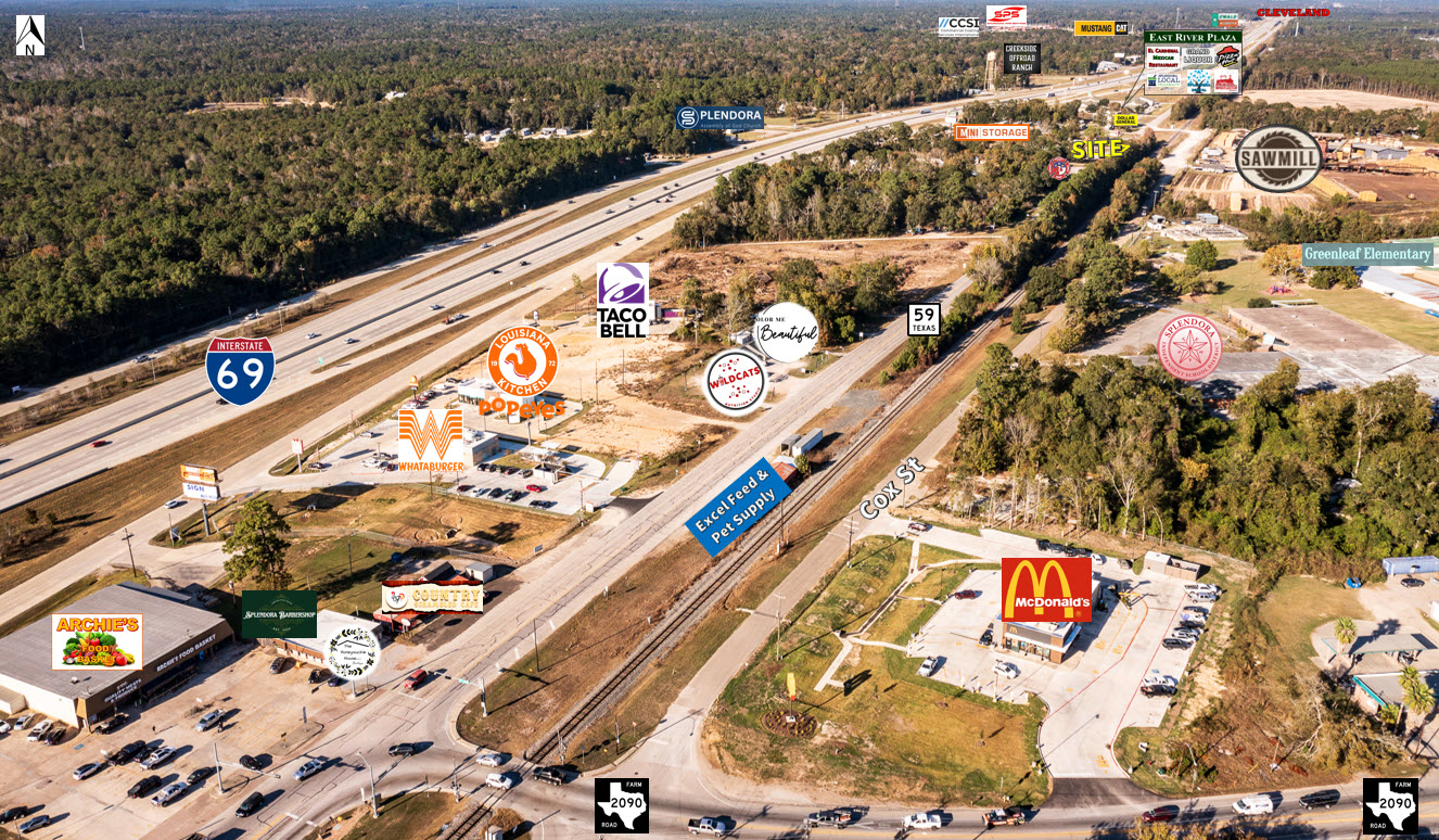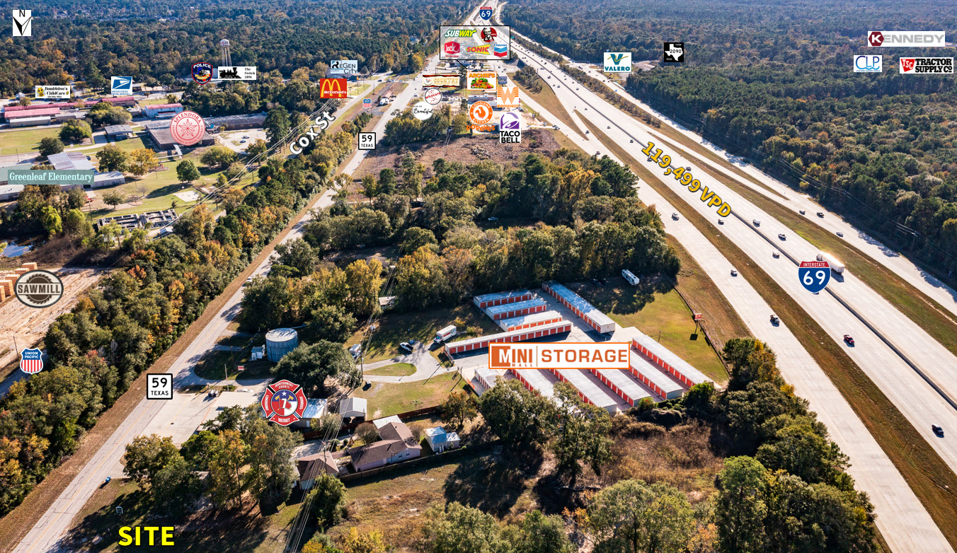Former Automotive Parts Store/Retail building for sale in prime location. 4,800 sf commercial vacant space ready for build out to suit a variety retail or professional uses, Warehouse/Office space with single phase power, high ceilings, 2 grade level 12-foot roll up doors and loft - High growth area with increasing traffic adjacent to "coming soon" new development - 110 feet of Business 59 N frontage, Easy access to US-59/I-69 & FM 2090, 4 miles fromTX-242, 9 miles North of 99/Valley Ranch