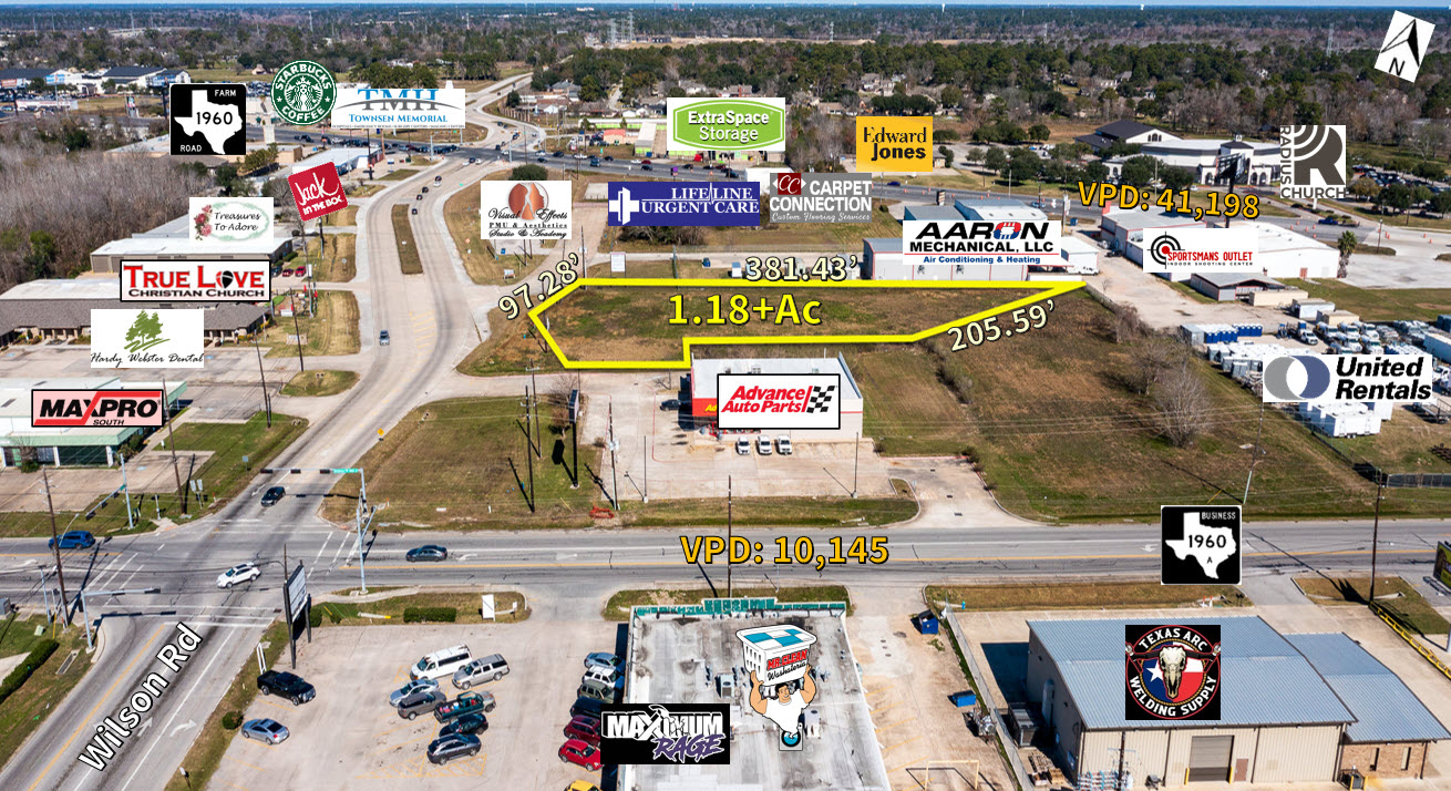 1.18-acre commercial lot located on high-traffic Wilson Road near Business FM 1960. This high-visibility tract offers excellent frontage, strong traffic counts, and easy access to major thoroughfares, FM 1960, Hwy 59/ I-69, & BW8, serving the Humble, Atascocita, and northeast Houston markets. Surrounded by established businesses and dense residential neighborhoods, this site provides outstanding exposure and long-term growth potential. USE RESTRICTIONS APPLY. CALL AGENT FOR DETAILS