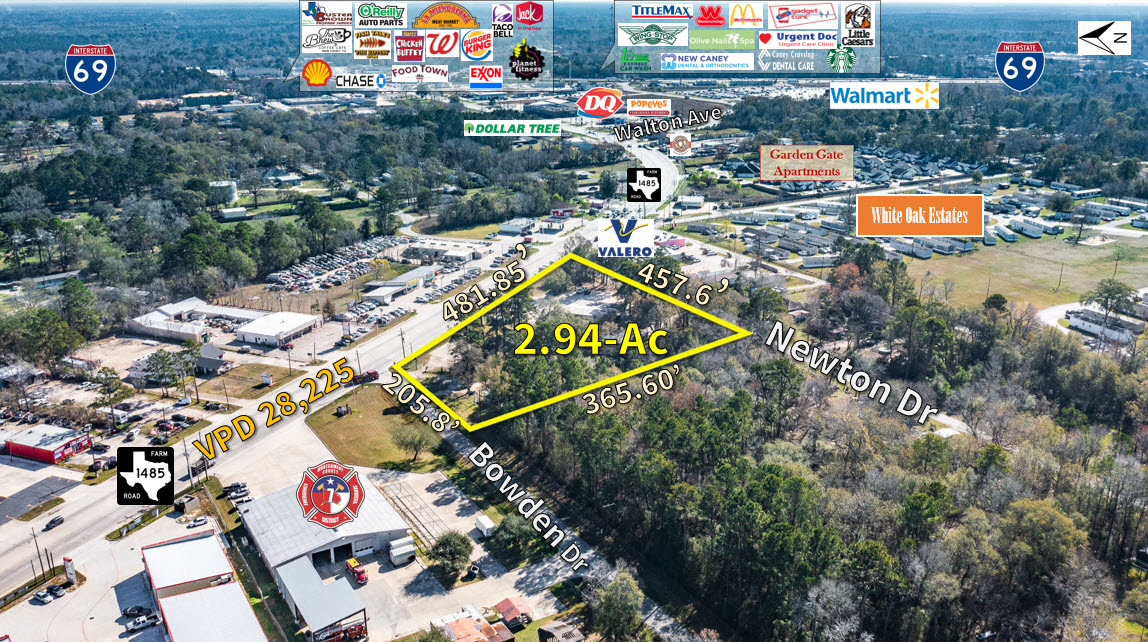 2.94-acre income-producing commercial property in one of New Caney’s fastest-growing corridors. This dual-corner site offers 481' FM 1485 frontage, strong traffic exposure, and proximity to major regional developments. Multiple income-generating improvements, including a 3,844 SF tavern, 1,200 SF retail building, and a 1,064 SF mobile home, providing immediate cash flow with upside potential for future redevelopment or expansion. Strategically located near Walmart Supercenter and just minutes from Valley Ranch Town Center, the site benefits from heavy consumer traffic and surrounding residential growth. Easy access to I-69 (Hwy 59) and Grand Parkway (Hwy 99) makes this an ideal location for retail, office, or commercial users.