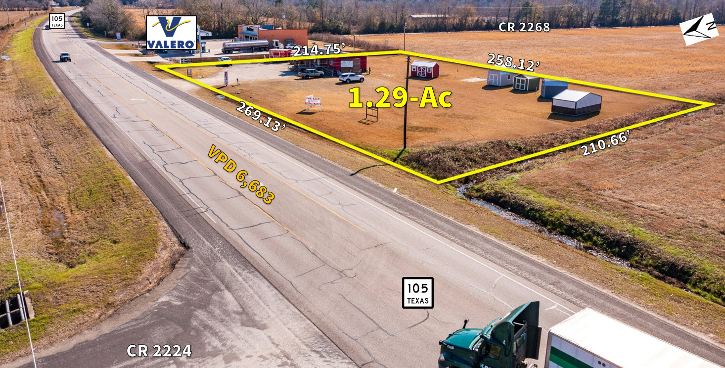 ±1.29 acres of commercial land with direct frontage and strong visibility along Highway 105 in Cleveland, Texas. The site offers convenient access to major regional roadways and is well suited for retail, office, or light industrial development. Located in a growing area north of Houston, the property provides an excellent opportunity for owner-users or investors seeking exposure along a primary traffic corridor.