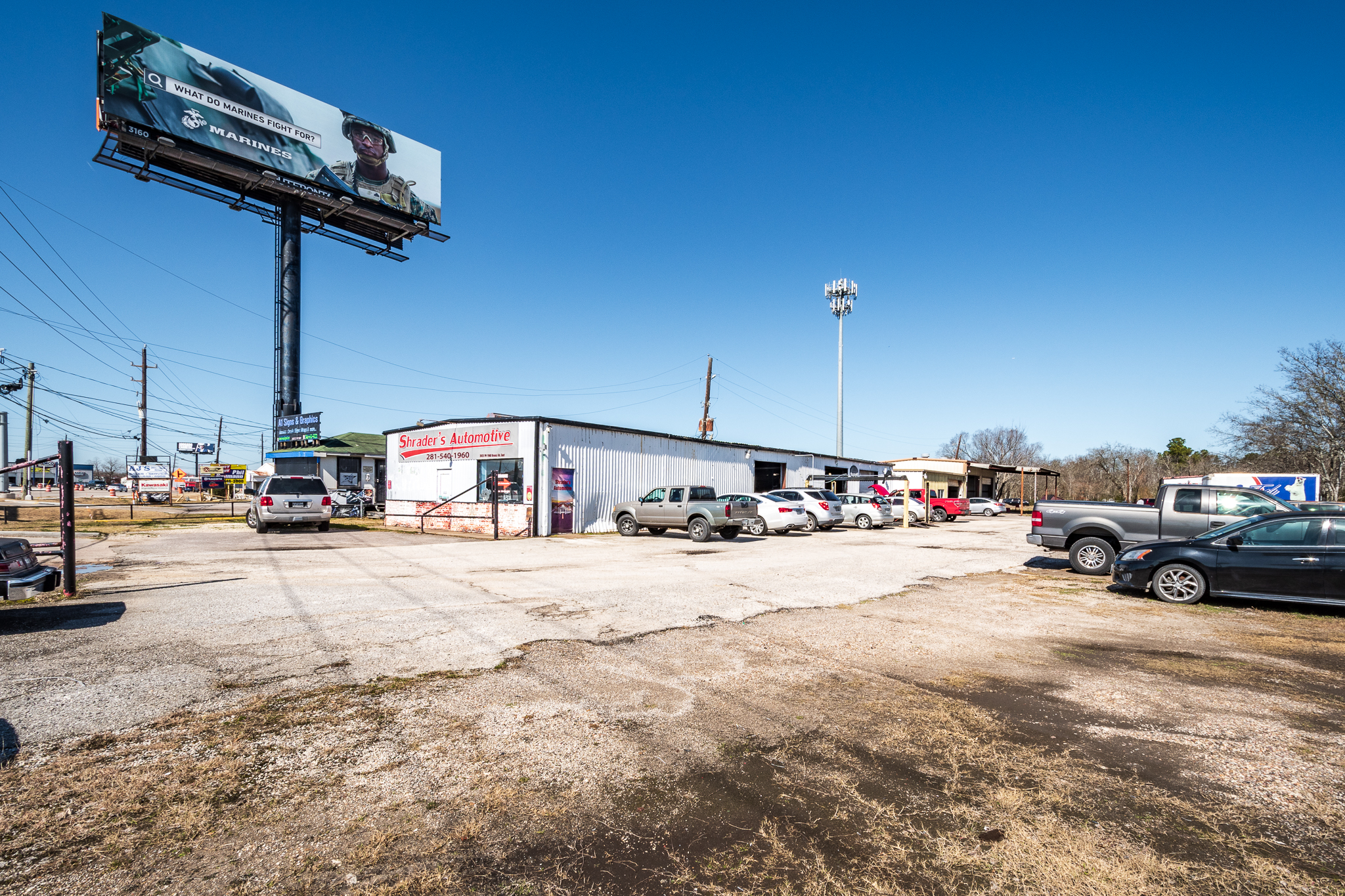 1.63-acre automotive service property with substantial frontage along FM 1960 Bypass East in Humble, Texas. The site features three buildings totaling 7,400 SF and is ideally positioned in a high-traffic corridor currently undergoing expansion to six lanes, further enhancing long-term visibility and accessibility.