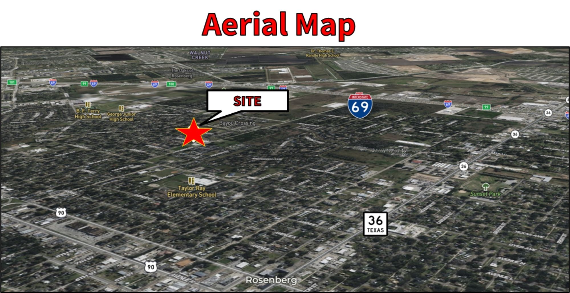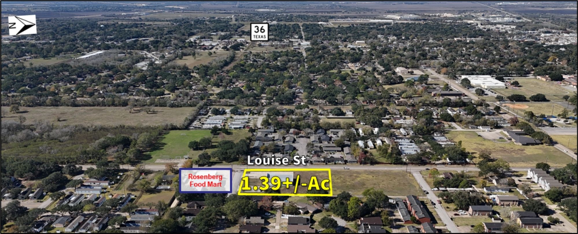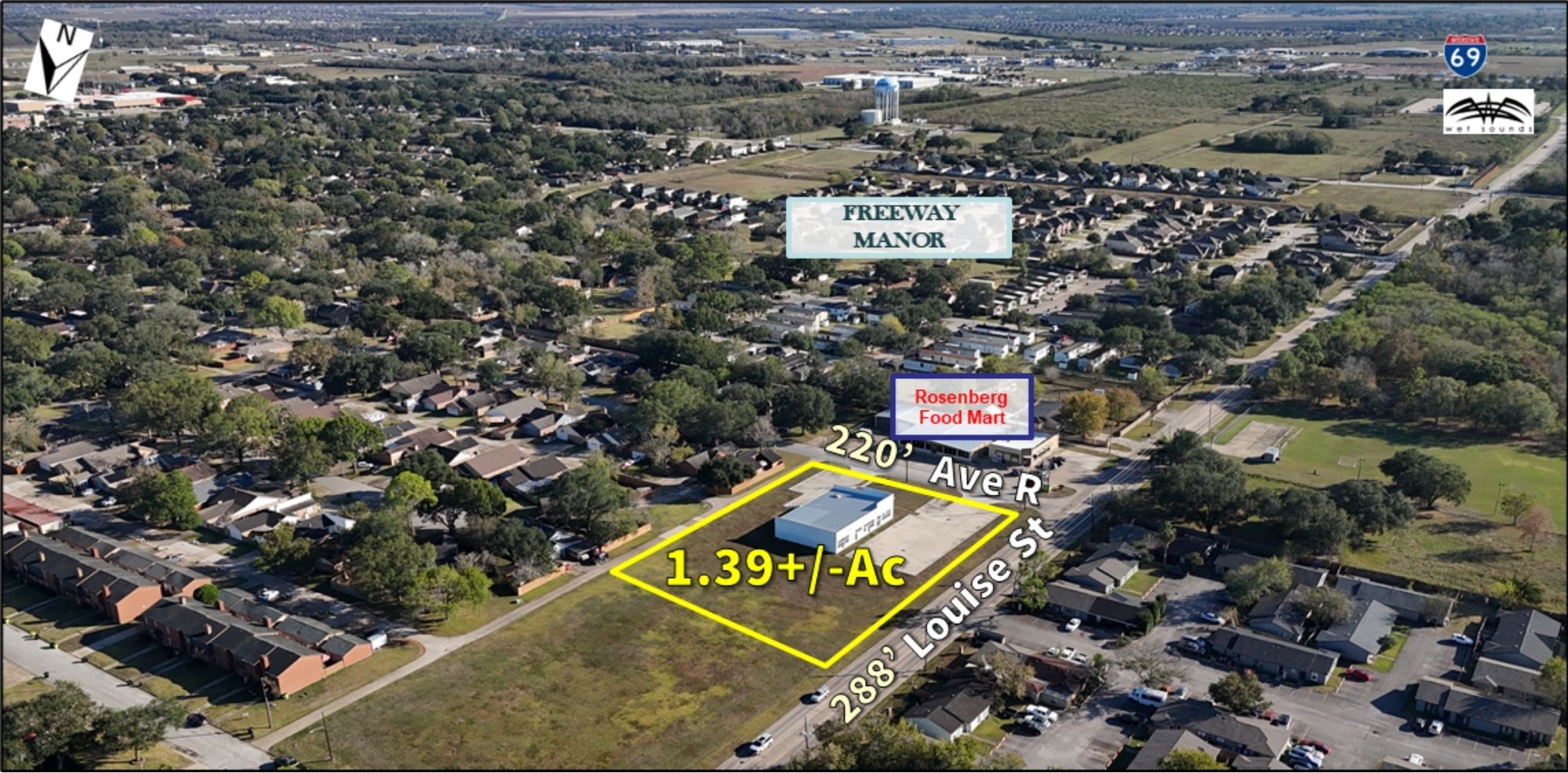 Hard corner 1.39 acres of land and 5,400 Sq Ft Build-to-Suit Retail Building in high growth area of Rosenberg, Texas. Property has excellent frontage with approximately 288 feet of land fronting Louise St and 220 feet on Avenue R. Easy access to Hwy 59 and Hwy 90. Utilities available through City of Rosenberg.