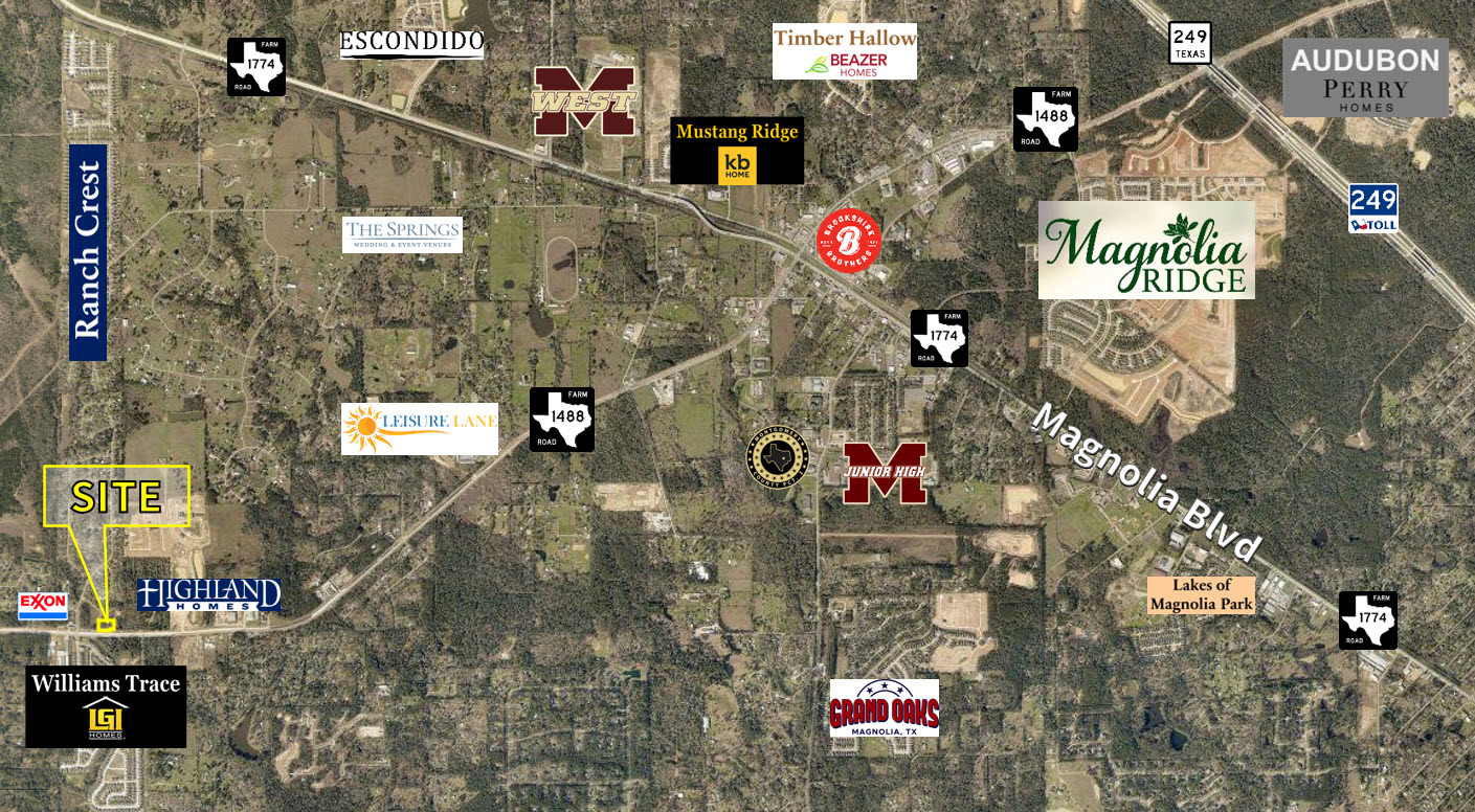 - Near Williams Trace Subdivision, Ranch Crest Subdivision, New Magnolia Ridge Subdivision