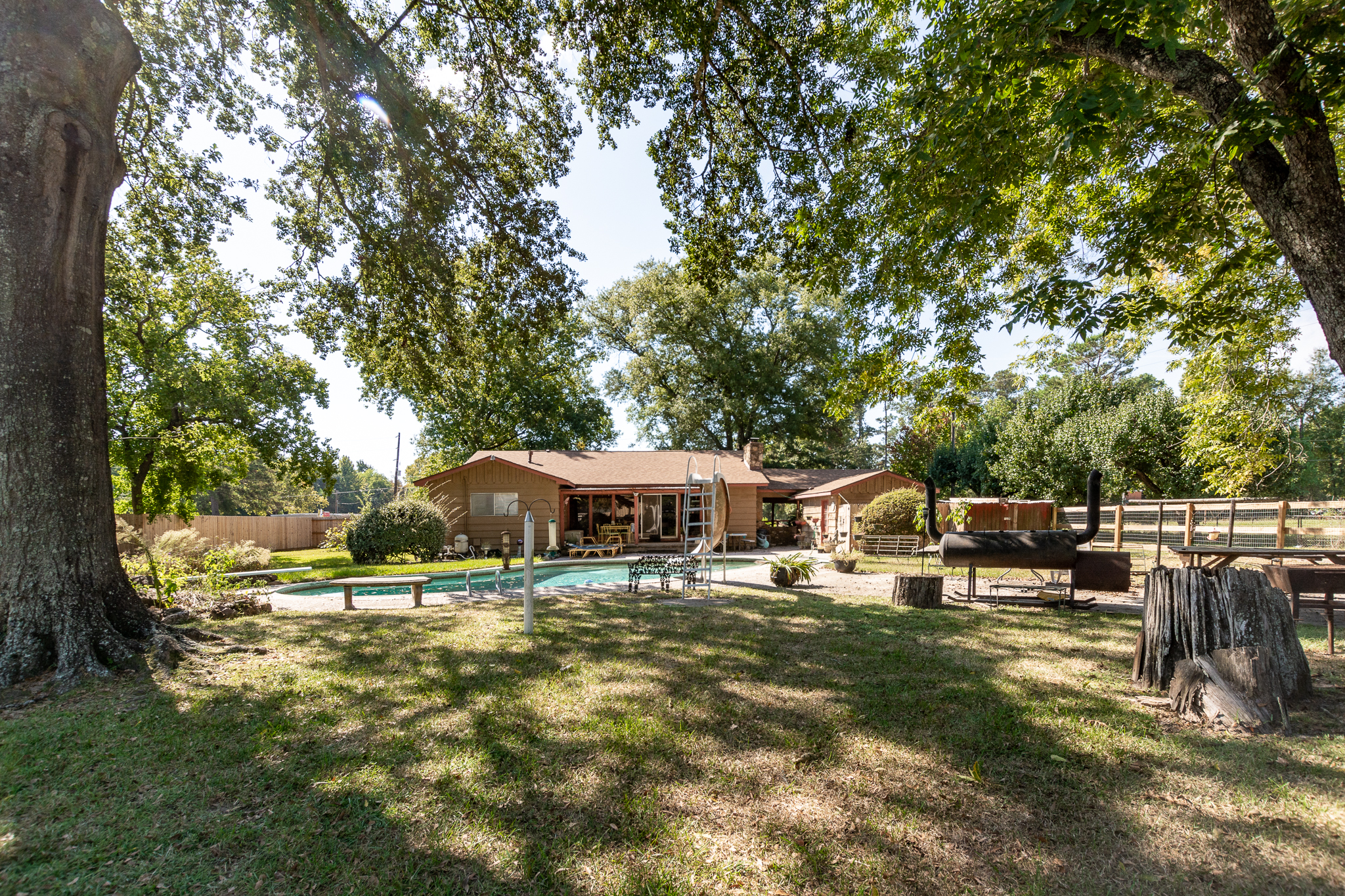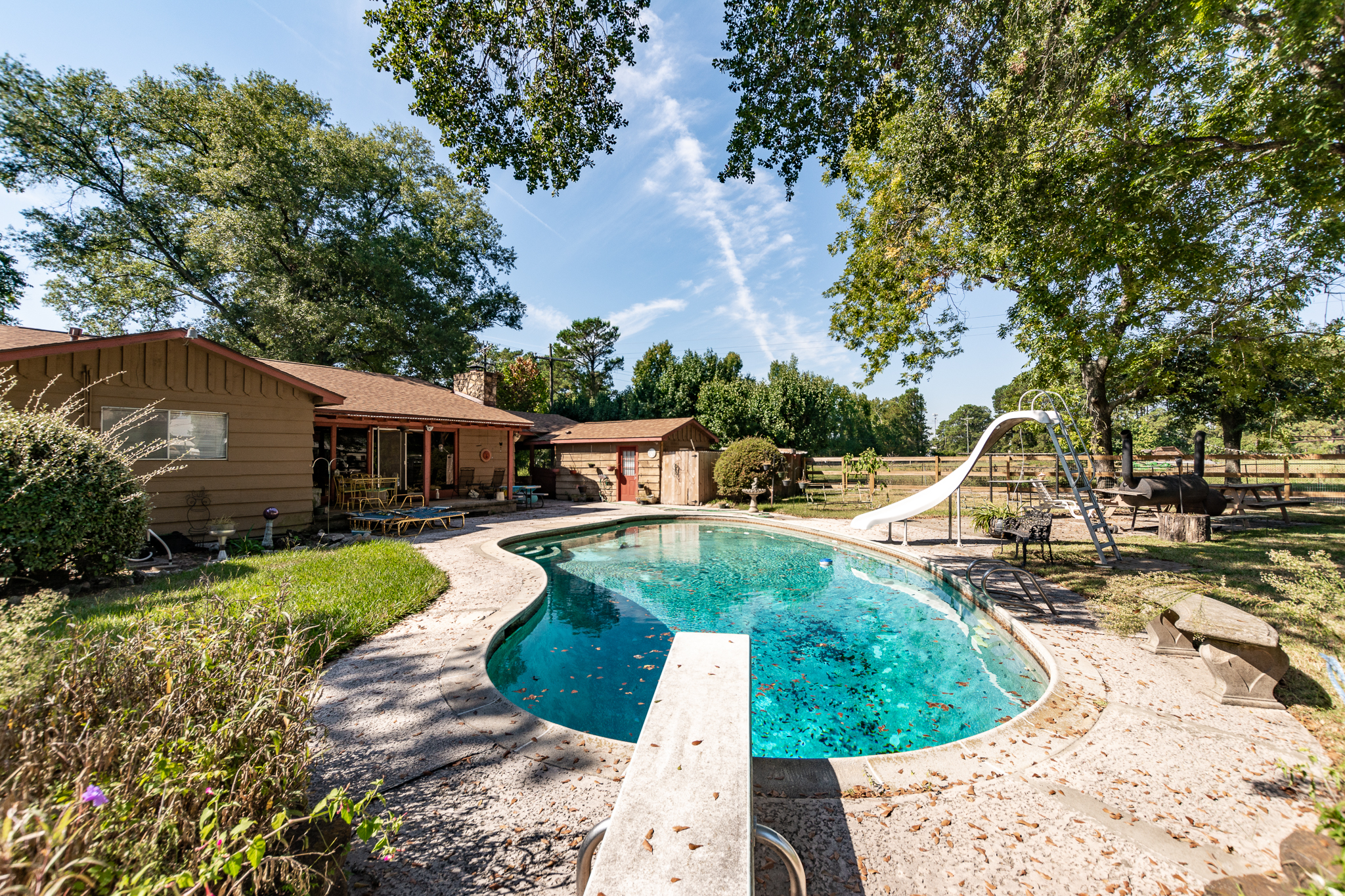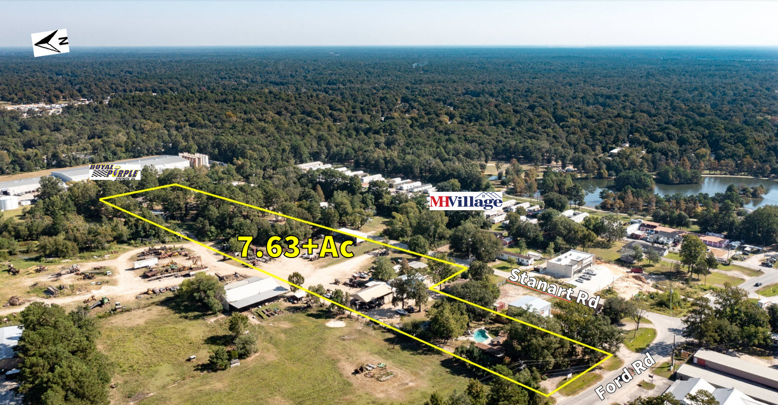 Property offers 1,952 SF 3bd/1ba home on 7.633-Ac, in-ground pool w/ Pool House Bathroom, partially fenced yard, approx. 1,073 SF office bldg and dual access from Ford Rd & Stanart Rd
