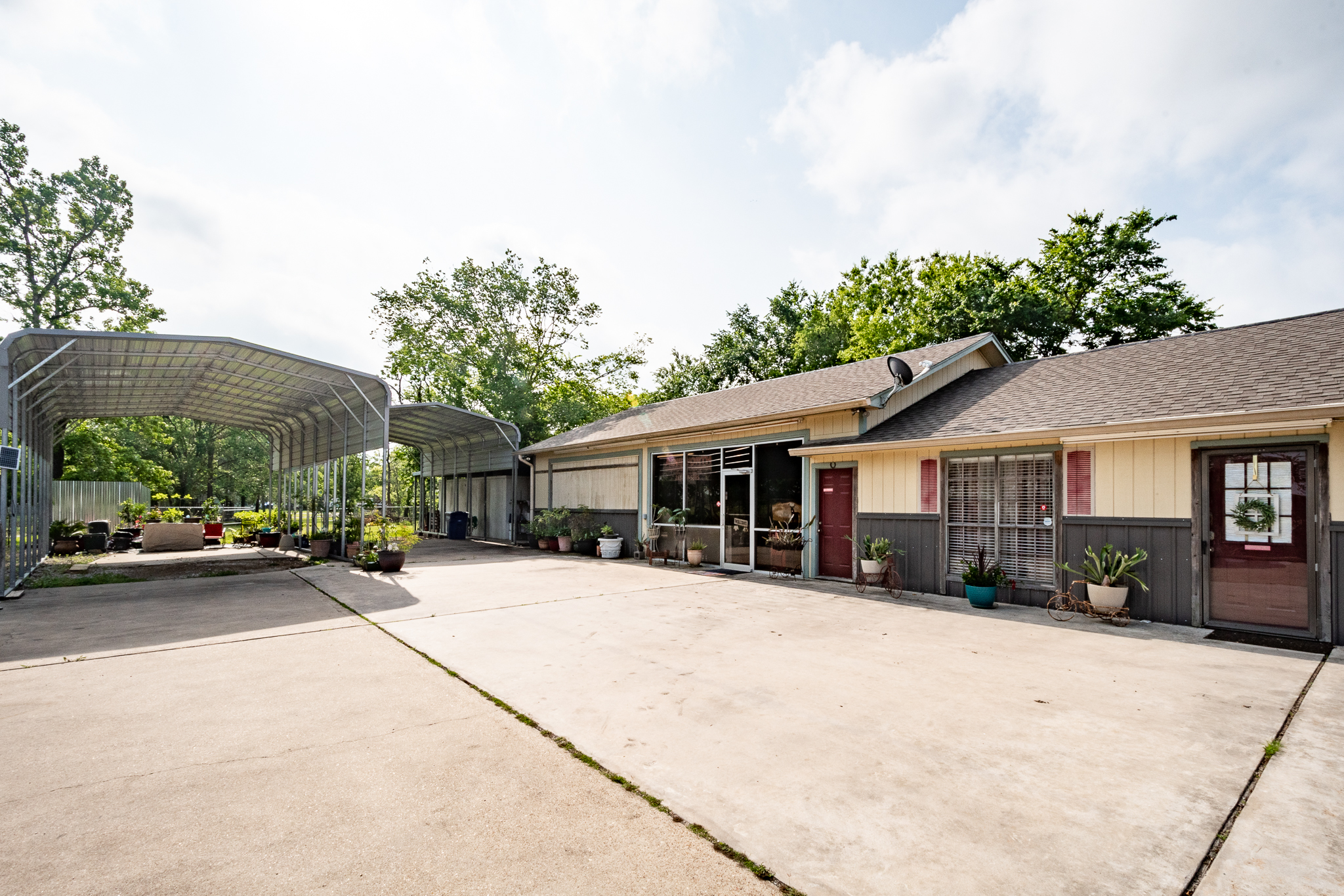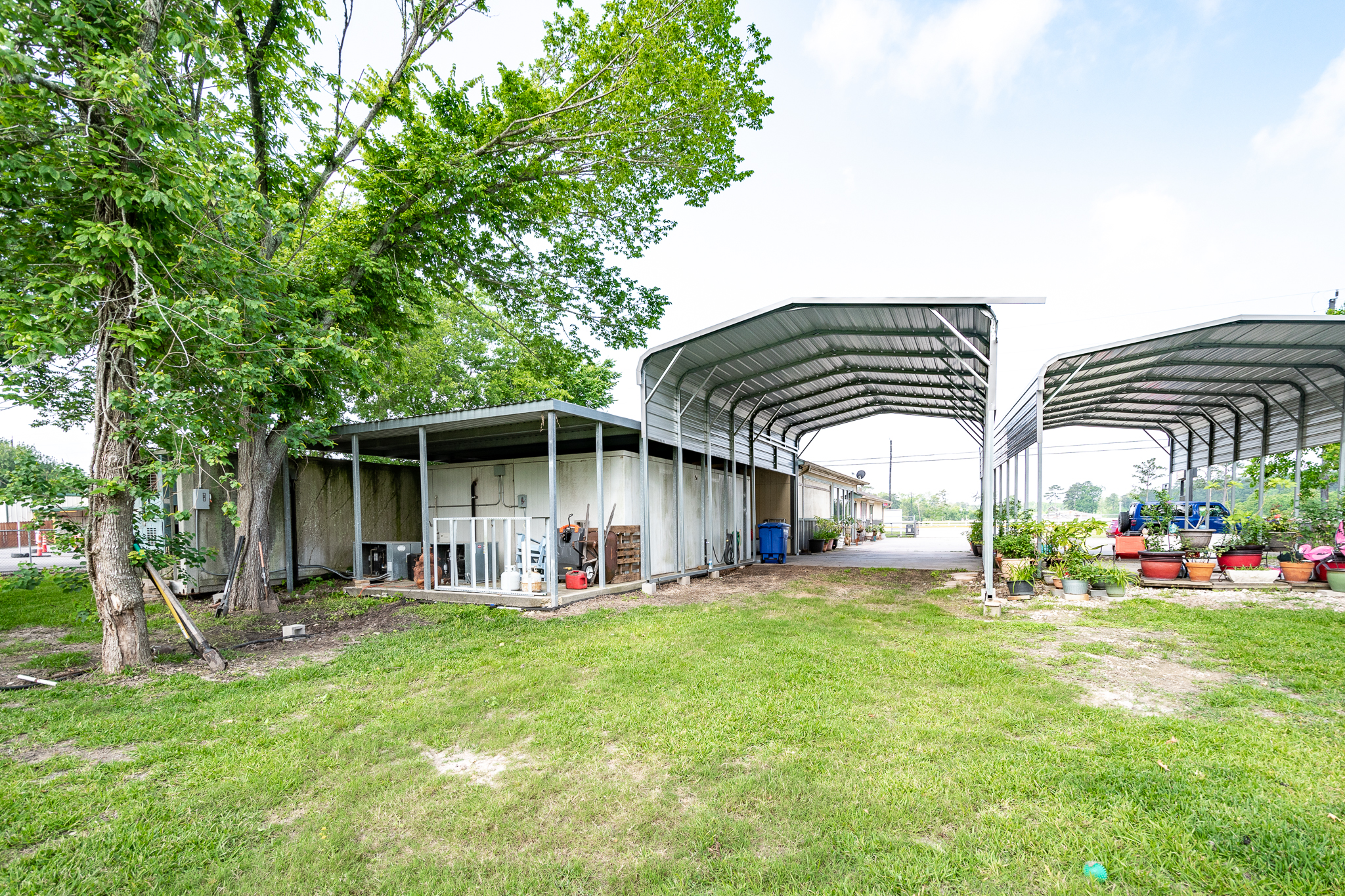 - Property Features: 2,100 SF building that includes owner’s residence, Electric Gate & completely fenced, 9,100 SF paved parking, 18x35 & 18x40 RV carport w/electric & 30 amp RV Plug In, New Paint & Storm doors